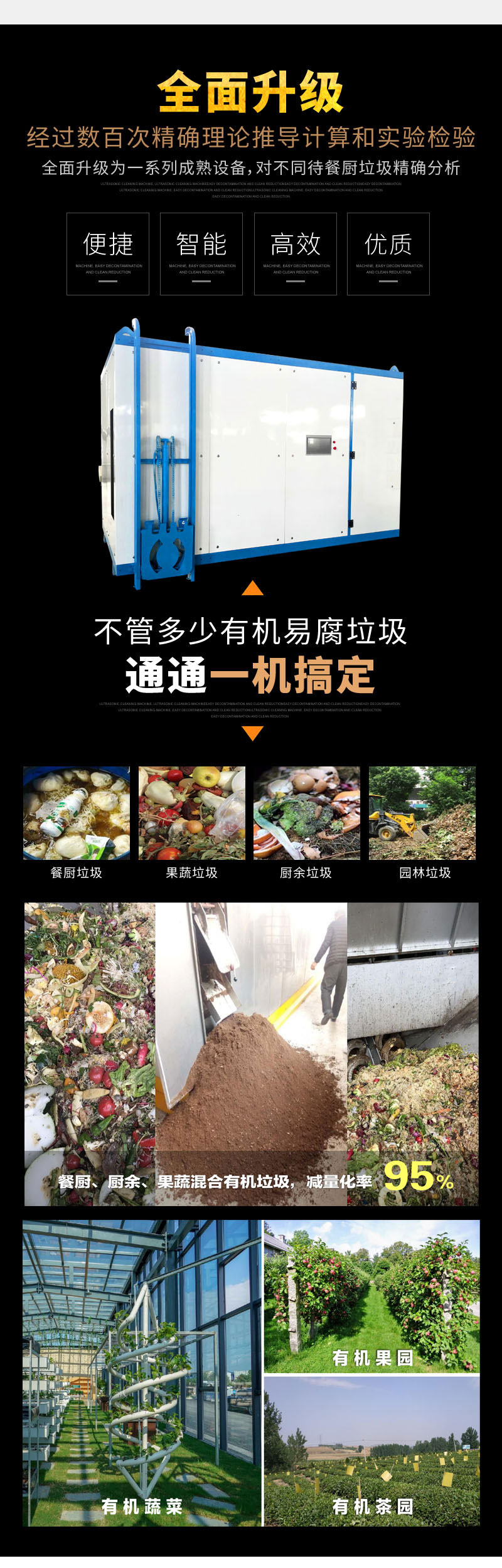 廚余垃圾處理智能一體機以餐廚、廚余、尾菜等有機垃圾等為原料,通過破碎、脫水、提油、發(fā)酵等技術(shù),可實現(xiàn)將垃圾減量90%以上。該設(shè)備包含人機交互智能、自動稱重提升、二次分選、壓榨脫水、油水分離、螺旋提升、厭氧發(fā)酵、供氧、除臭等功能。處理后有機肥可用于種植植物,污水經(jīng)后續(xù)處理后達標(biāo)排放,廢油脂回收后作為生物質(zhì)燃油原料。